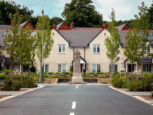 Introduced almshouse-style apartments, landscaped streets, and natural play areas designed around the memorial to celebrate and protect the site’s history.