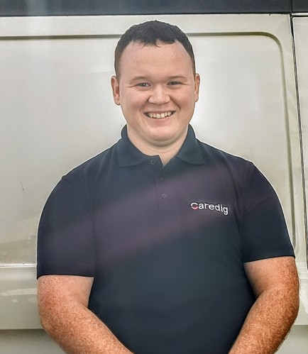 Tomas joined Caredig as an apprentice project officer and has quickly become an invaluable member of our decarbonisation team. Currently studying part-time for a BSc (Hons) in Construction Project Management at the University of South Wales in Pontypridd, Tomas has consistently demonstrated initiative, professionalism, and a deep commitment to placing tenants at the heart of our sustainability journey.